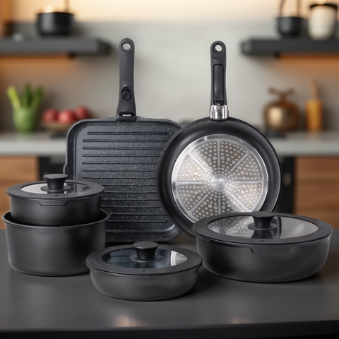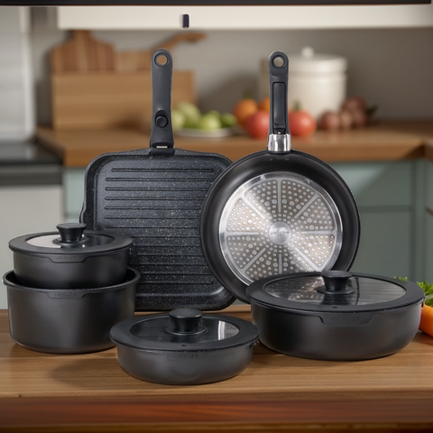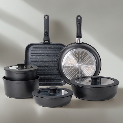 Безопасный антипригарный набор индукционной кухонной посуды со съемной ручкой